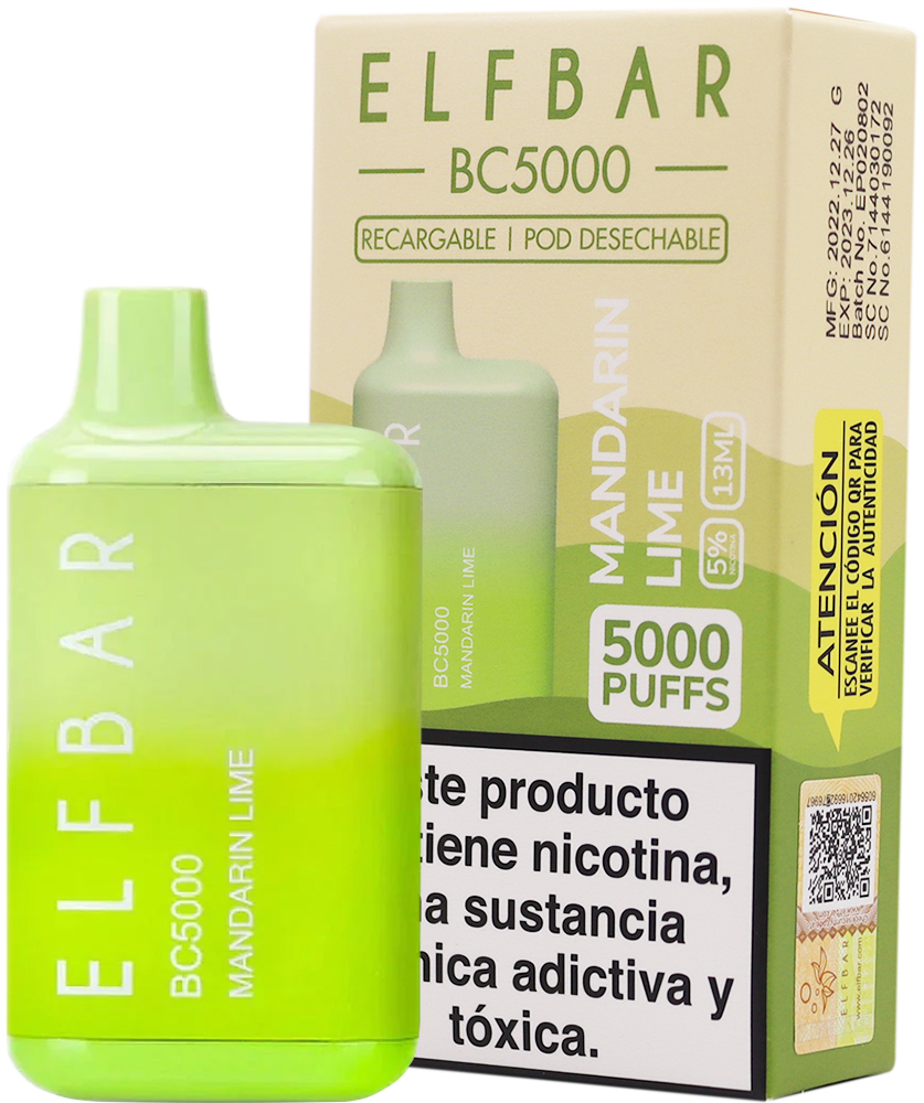 Vaper Pod Descartable Elfbar BC5000 5% Nicotina 5000 Puffs - Mandarin Lime